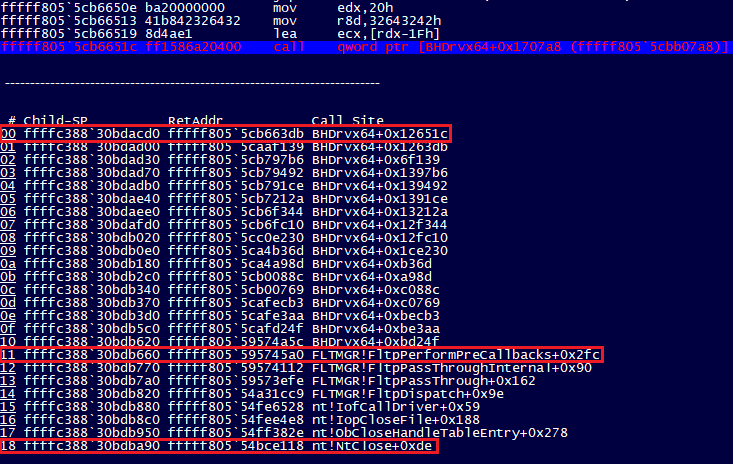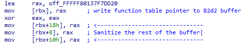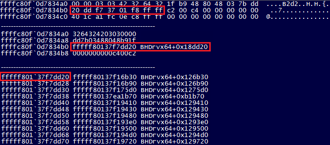 We found out that objects tagged ‘B2d2’ were of particular interest because they contained a pointer to another driver named ‘BHDrvx64.sys’. In addition that was a pointer to a table of function pointers, which made it even more interesting.
